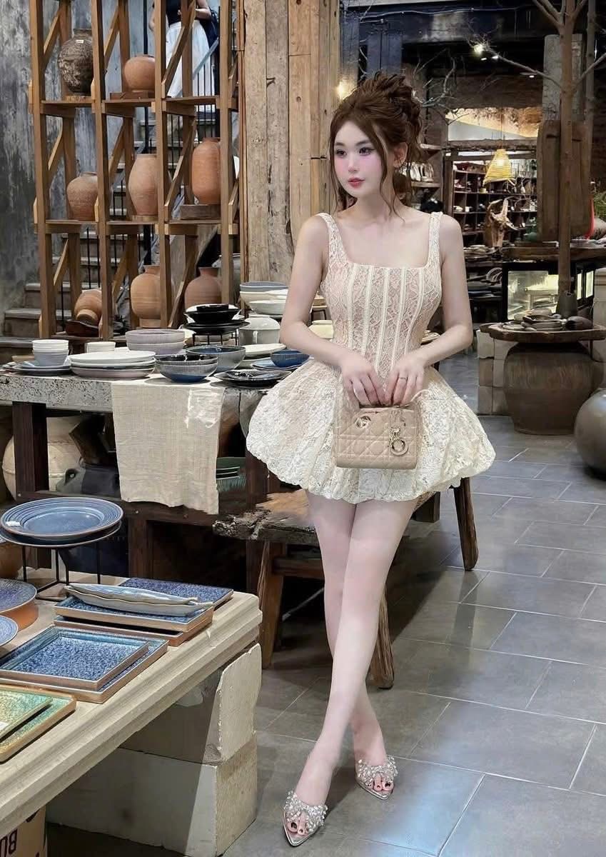 ຊຸດກະໂປ່ງສັ້ນຫລູ່ຫລາລາຍດອກ ເກັບຊົງ ມີສັບໃນ