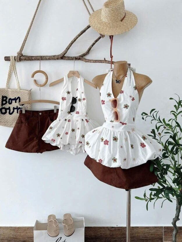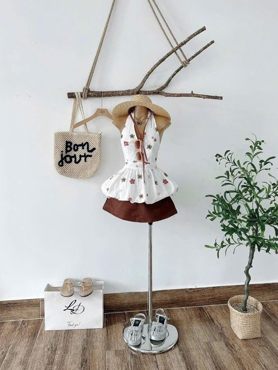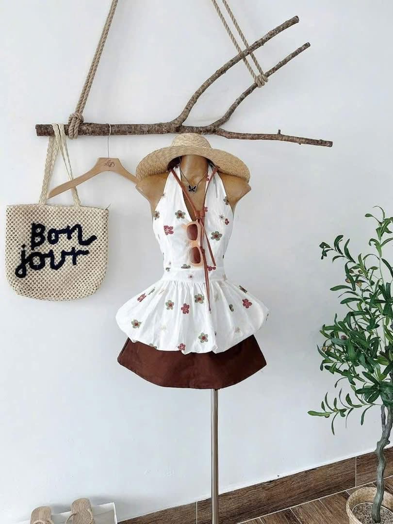 ເສື້ອສາຍດ່ຽວສີຂາວລາຍດອກ + ສະເກີດ
